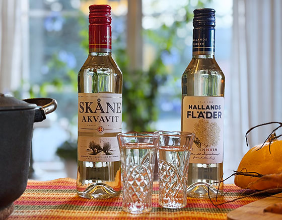 När du har avnjutit en mustig och smakrik höstmiddag är det rätt tillfälle för en kryddad snaps. Inte bara för den fina smaken hos en Skåne Akvavit eller Hallands Fläder, utan även för deras goda egenskaper för en mätt mage.
